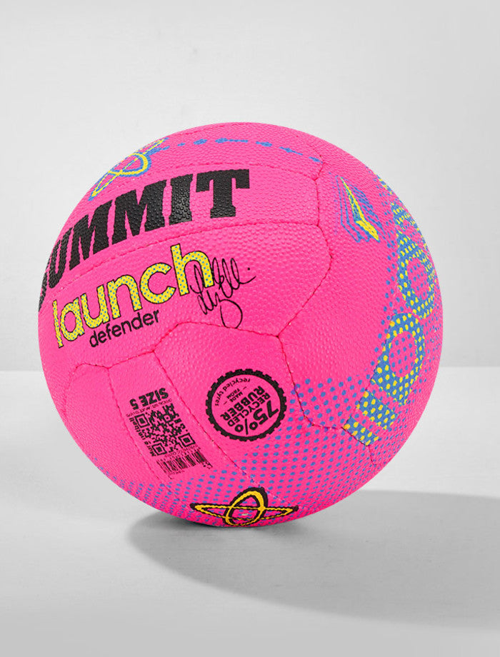 The winning choice for senior club training and junior games, a netball that delivers on value and quality. A netball that can do it all, the Launch Defender has a tough outer rubber with a unique foam backing to give it a soft, grippy feel. Made from 75% recycled rubber and comes in compostable packaging.